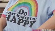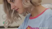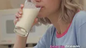 Tiny Teen - Teen spills milk — gets cumming on herself