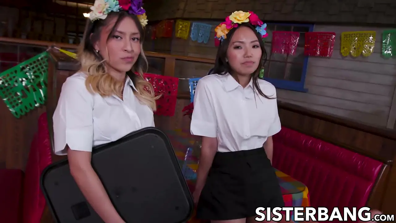 Teen girlfriends Asia Lee and Mads Flores are in a steamy threesome, both giving deepthroat blowjobs to their boyfriend. They take turns riding him hard in doggystyle and missionary positions. He cums on their pretty faces in a messy, hardcore finale.
