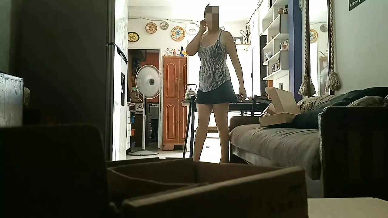 Woman shows her twat to the hidden of the Internet technician and catches her fucking and dripping jizz