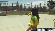 Blondie Fesser - Two hot girls enjoy a big dick🌭 following a football match