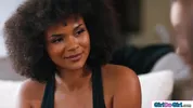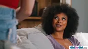 - Small tits milf hired a busty psychic to tell her big tits ebony roommate she has a crush on her The lesbian babes ask the cougar if she wants to join