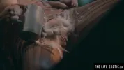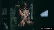 - Big round nipples on a girl secretly masturbating in her hut