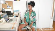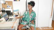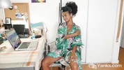 Lola Rose - Nasty ebony babe from Yanks Lola Rose fingering her hairy pussy for orgasm while watching porn