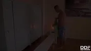 Lady Bug - College students Lady Bug & Shalina Devine go nuts on dude′s veiny cock in sauna