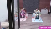 Twins - Hot ass brunette teen enjoying threesome sex keeping it in the