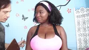 Marie Leone - BBW Black Ebony Teen with extreme huge natural Boobs tricked to Interracial Casting Sex by older white Guy