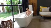 Kriss Kiss - Real amateur sex in the bathroom with a petite brunette! Cum in mouth!