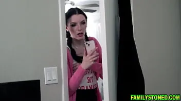 Kallie Taylors mouth is all over her stepdads big cock while Celestina watches