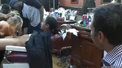 Princess Donna - Princess Donna Dolore makes bound blonde slave Shani Reid suck and gang bang fuck black dicks while gives her whip in public barbershop