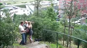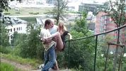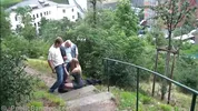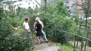 - Public Threesome City Stairs