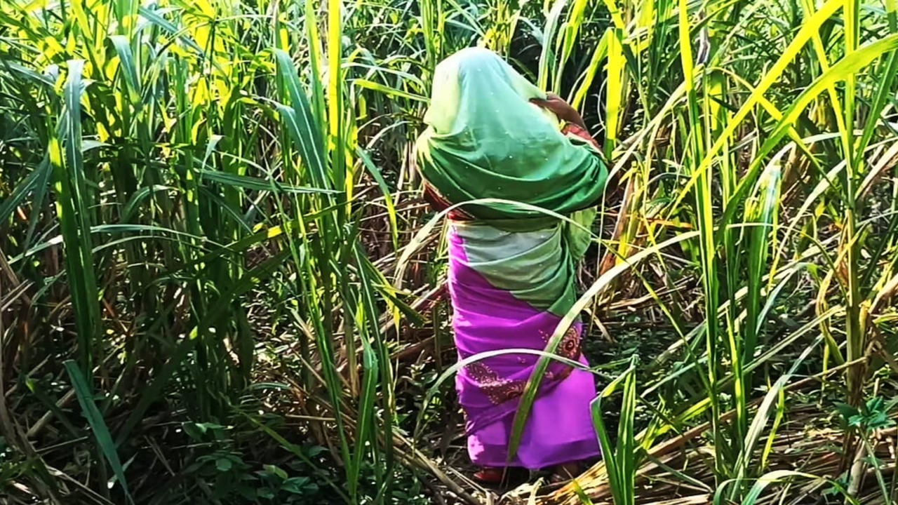 A woman meets her husband's friend in a sugarcane field, where she gets intimate with him. She rides his long, thick cock as her husband watches. The taboo encounter leaves both parties satisfied.
