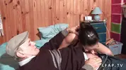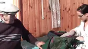 Papy Voyeur - Pretty young brown-haired girl fucks an elderly pervert