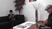 Papy Voyeur - milf gets gangbanged hard and takes facial in three-way anal👌 orgy