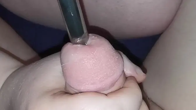 A curvy, beautiful German wife tests her husband's limits by attempting to sound him with different large sex toys. She deep throats the huge toys, gagging and struggling while her husband's small cock gets harder with each attempt. The couple's bedroom is filled with close-up shots as they explore this intense BDSM scene.