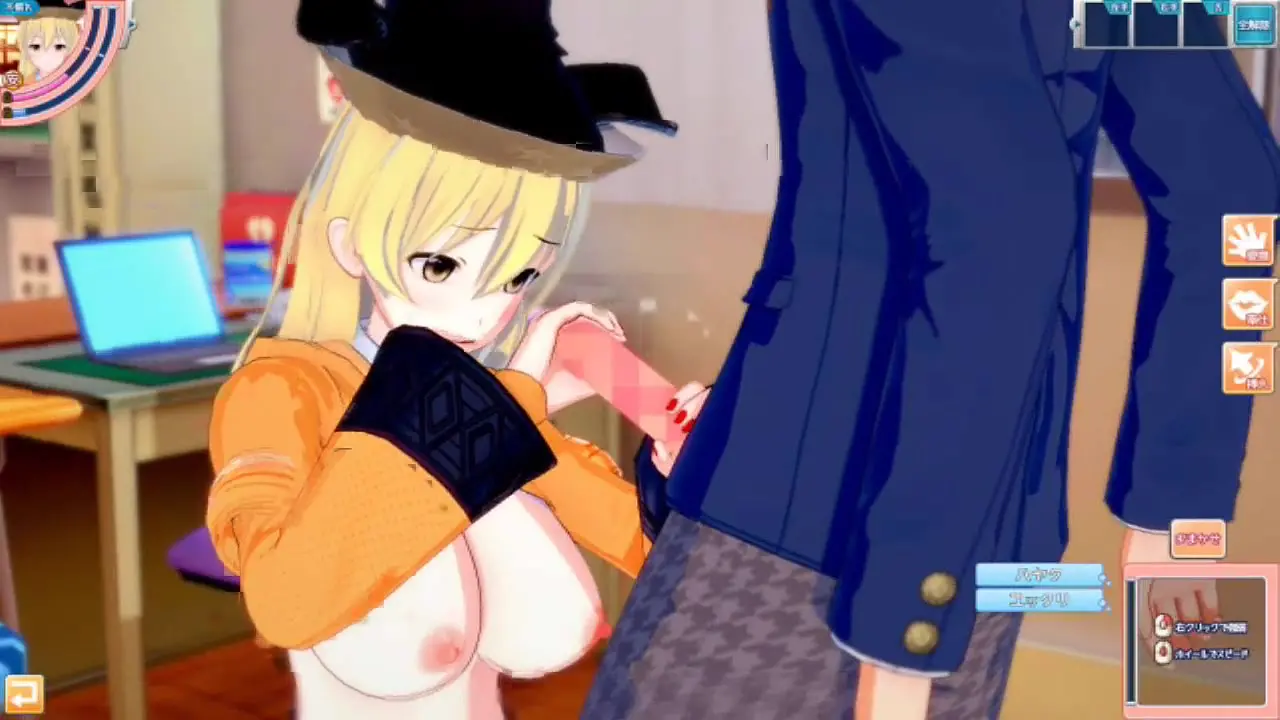 [Eroge Koikatsu! ] Touhou Project Matara Hidden Kina's boobs rubbed and Nio standing handjob fellatio sex after being served! Big breasts anime [Hentai game Toho]