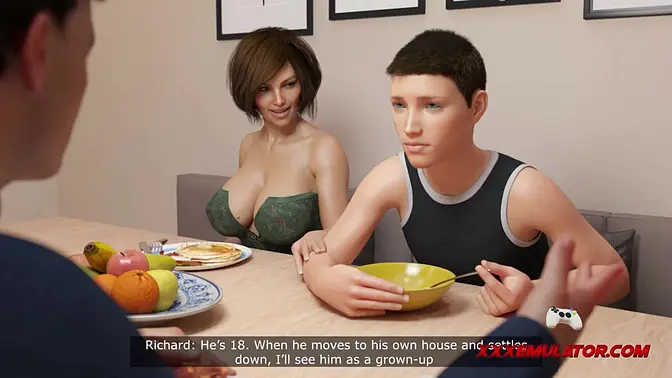 An 18-year-old stepson stands on a chair to get a better view of his MILF stepmom's well-endowed ass and juicy pussy. She teases him with her body, making him hornier by the minute. He can't resist and starts fucking her, giving her an incredible anal session before filling her with his cum.