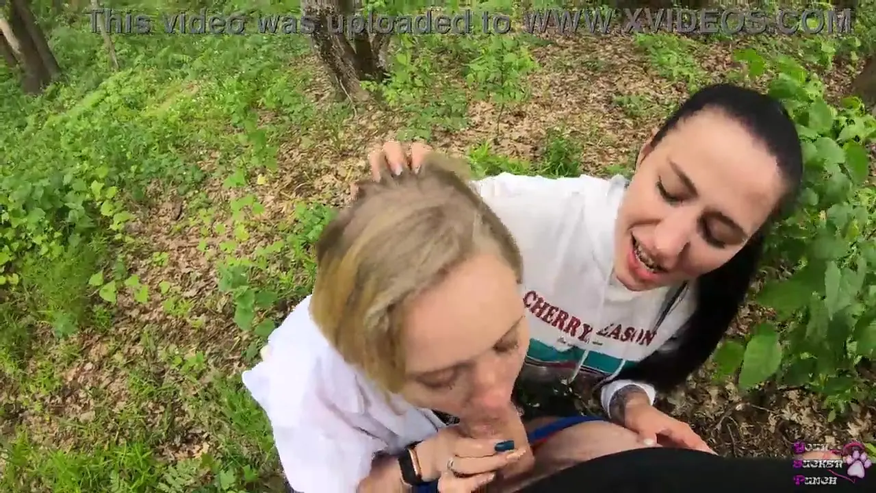 Amateur GF and her slutty friend give sloppy outdoor blowjob
