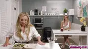 Emma Hix and Blake Blossom lock lips in a steamy kiss, tongues dancing as passion ignites. Emma's big tits press against Blake’s bubble butt🍑 while she grabs her natural tits. Blake shaves her pussy✌ and dives in, licking and fingering👉 with wild desire. They ride each other in the office, high heels clacking, blonde hair messy, caucasian skin glowing under the lights—pure lesbian ecstasy.